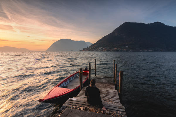 The pier on Lake Iseo, Brescia Province, Lombardy district, Italy.