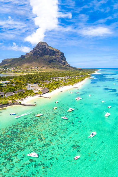 Aerial view of the beach of the Beachcomber Paradis Hotel, Le Morne Brabant Peninsula, Black River (Riviere Noire), Mauritius