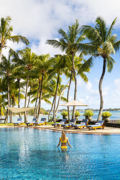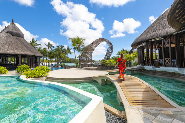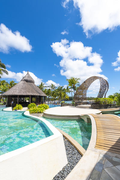 Aerial view of the Shangri-La Le Toussrok Hotel. Trou d'Eau Douce, Flacq district, East coast Mauritius, Africa