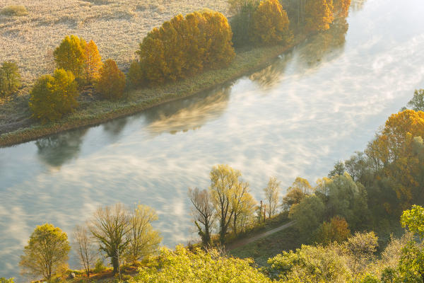 Foggy sunrise on Adda river, Airuno, Brianza, Lecco province, Lombardy, Italy, Europe