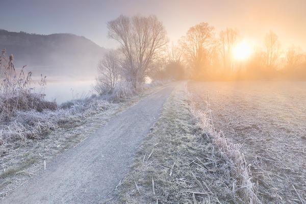 Frozen sunrise, Airuno, Brianza, Lecco province, Lombardy, Italy, Europe