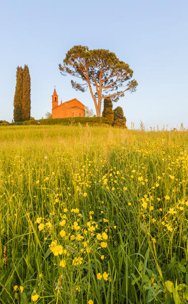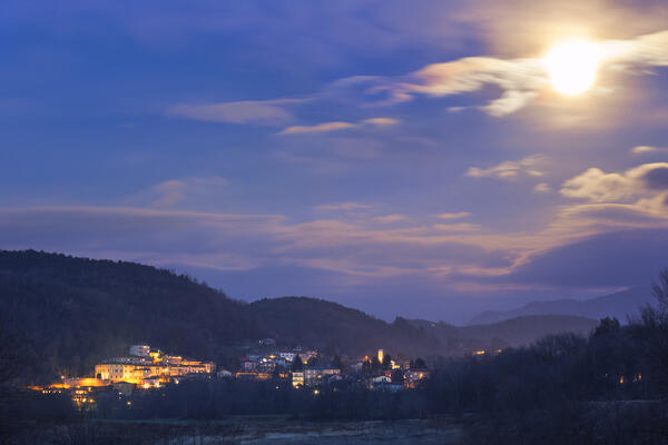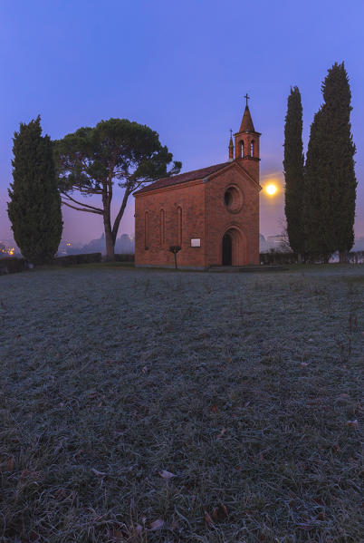 Red church of Pomelasca in the moonlight, Brianza, Como province, Lombardy, Italy, Europe