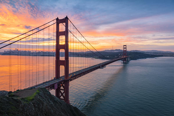 Golden Gate Bridge during sunrise. Marin County, San Francisco, Northern California, USA