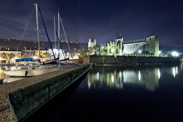 The port and the Scaligero castle of Torri del Benaco. Lake Garda, Verona province, Veneto, Italy, Europe.