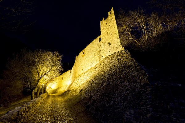 The perimeter walls of the castle of Avio. Trento province, Trentino Alto-Adige, Italy, Europe.