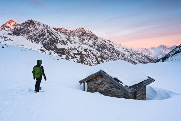 Sunset in Valle delle Messi in Ponte di Legno, Upper Camonica valley, Brescia province, Lombardy District, Italy, Europe
