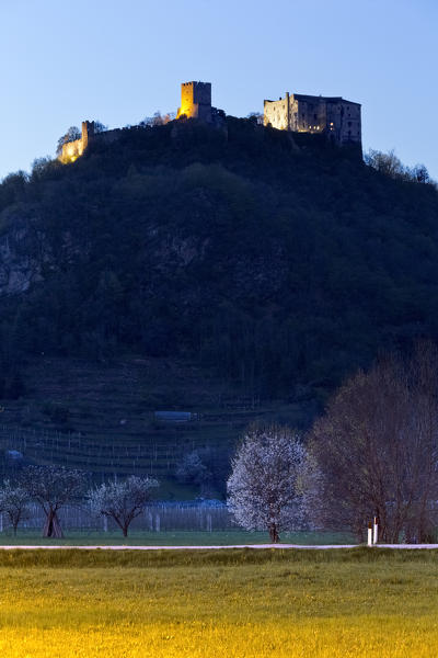 Pergine Castle and the underlying rural area of Valsugana. Trento province, Trentino Alto-Adige, Italy, Europe.