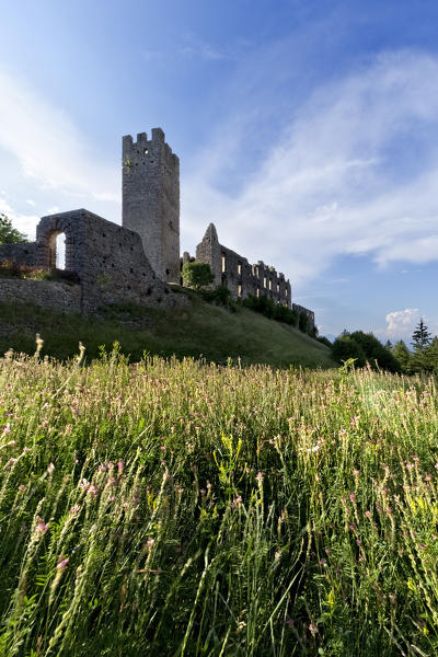 The ruins of Belfort castle overlook the Spormaggiore area. Trento province, Trentino Alto-Adige, Italy, Europe.