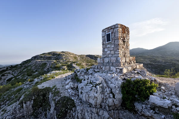 Austrian memorial stone on the top of Mount Ortigara. Asiago plateau, Vicenza province, Veneto, Italy, Europe.