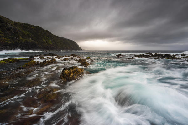 A view of the ocean and cliffs from Sao Joao, Pico Island, Azores, Portugal, Western Europe
