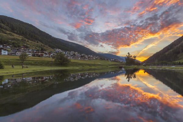 Sunrise on Santa Giustina lake, Non valley, Trento province, Trentino Alto Adige, Italy, Europe