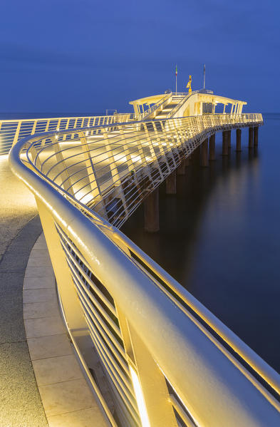 Lido di Camaiore pier illuminated at dawn, Lucca province, Versilia, Tuscany, Italy, Europe