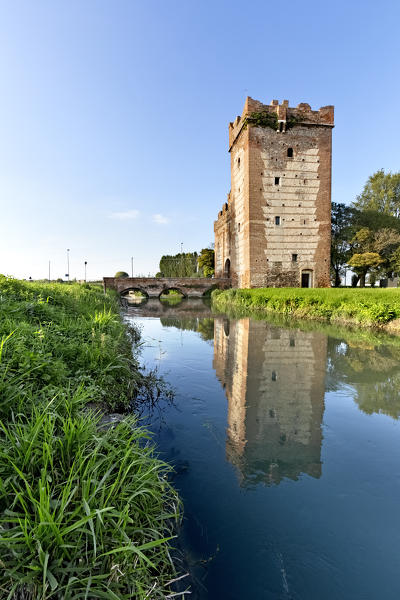 The scaliger tower of Isola della Scala. Verona province, Veneto, Italy, Europe.