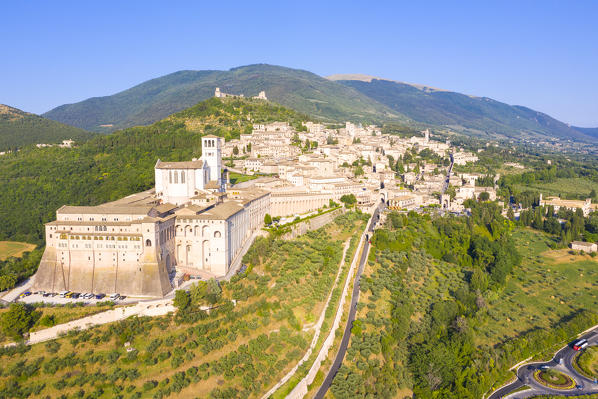 Sunset over Assisi, Perugia province, Umbria, Italy, Europe