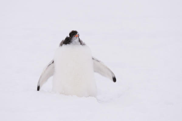 Molting Gentoo penguin chick (Pygoscelis papua), Petermann Island, Antarctica.