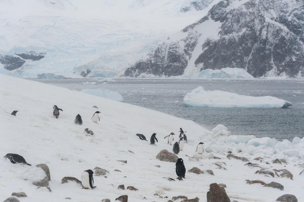 Gentoo penguins (Pygoscelis papua), Neko Harbour, Antarctica.