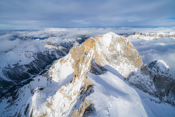 Aerial view of Gran Vernel peak in winter, Marmolada group, Dolomites, Trentino-Alto Adige, Italy