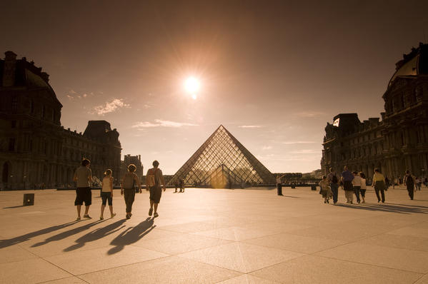 Musee du Louvre and Pei Pyramid, Paris, France.