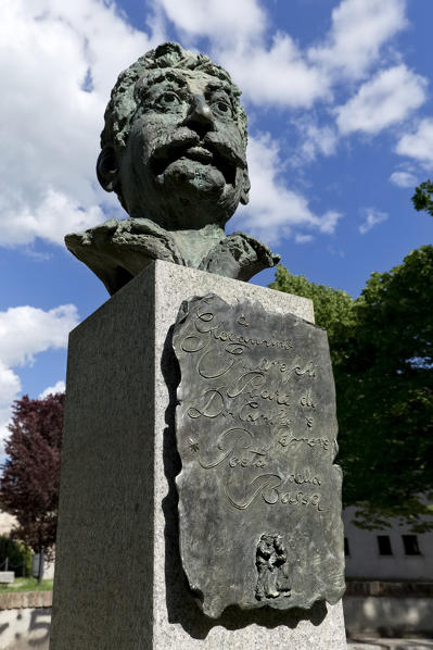 Brescello: the statue of Peppone and the town hall. The village is famous for the films of Don Camillo and Peppone inspired by the books of Giovannino Guareschi. Reggio Emilia province, Emilia Romagna, Italy, Europe.