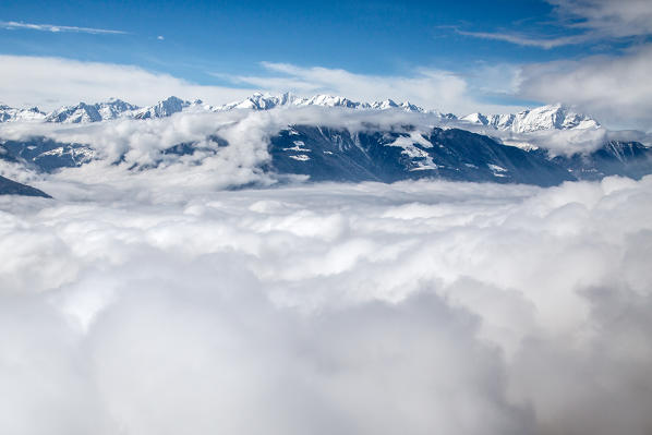 Aerial view of the villages of Chiesa, Lanzada, Torre di Santa Maria and Caspoggio Valmalenco, Valtellina Lombardy Italy Europe