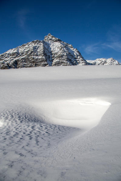 Sasso Moro covered with thick snow after a heavy snowfall in Valmalenco, Valtellina, Lombardy Italy Europe
