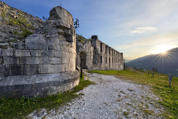 Austro-Hungarian Fort Cherle (Werk San Sebatiano) on a ghostly night. Folgaria, Cimbra Alp, Trento province, Trentino Alto-Adige, Italy, Europe.