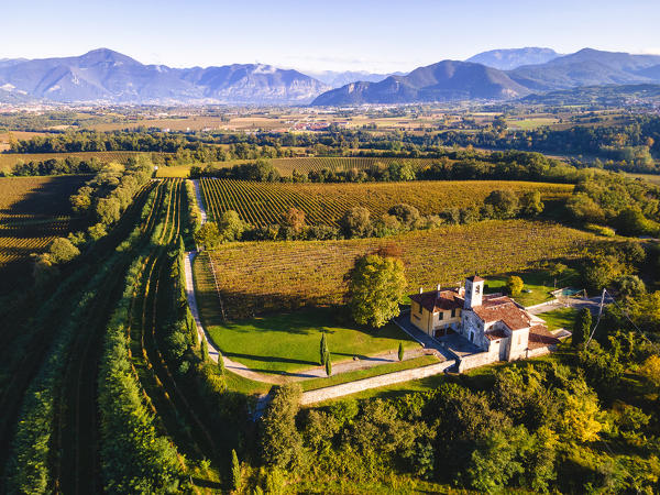 Sunset over Franciacorta and Torbiere del Sebino natural reserve, Brescia province in Italy, Lombardy, Europe.