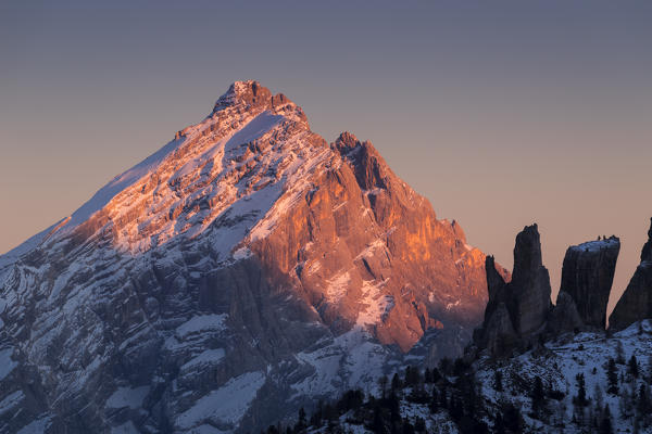 Sunset over the Monte Antelao with the Cinque Torri in shadow, Belluno province, Veneto, Italy