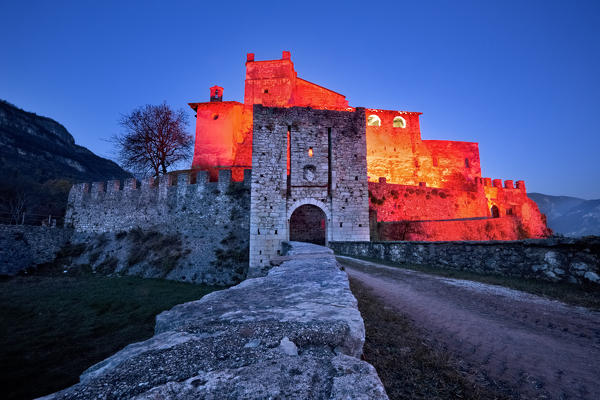 Spooky night at the Noarna castle. In the 17th century it was the scene of a famous witch trial. Nogaredo, Trento province, Trentino Alto-Adige, Italy, Europe.