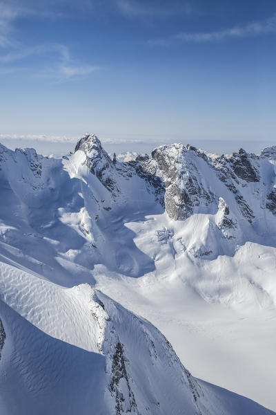 Aerial view of Pizzi del Forno angd Ago di Sciora. Forno valley, Engadine, Canton of  Grisons, Switzerland Europe