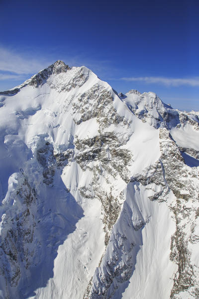 Aerial view of Piz Bernina in winter. Engadine, Canton of  Grisons, Switzerland Europe