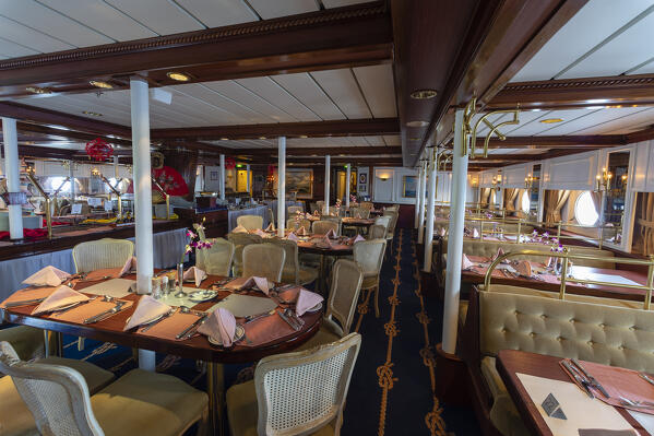 Dining room of the Star Clipper sailing cruise ship, Thailand.