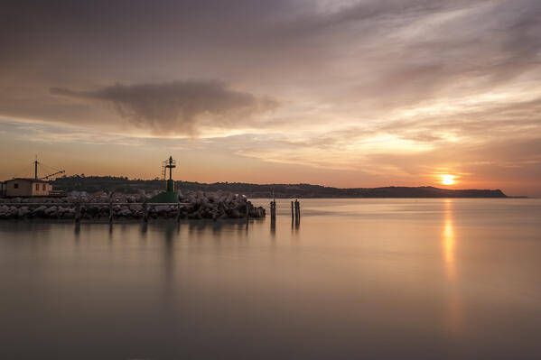 Fano harbor at dusk, Pesaro, Marche, Italy, Southern Europe