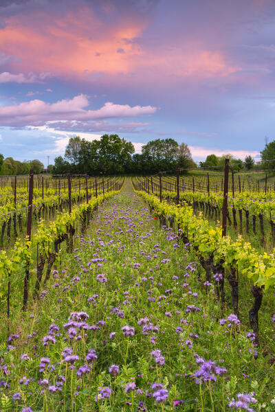 Spring season in Franciacorta, Brescia province, Lombardy, Italy.