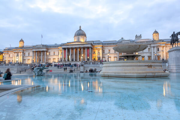 The National Gallery at dusk, Trafalgar Square, London, Great Britain, UK