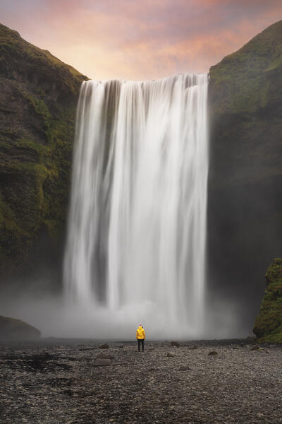 one guy admire the Vestrahorn mountain during a summer sunrise, Stokksnes, Hofn, Eastern Iceland, Iceland, Europe.
