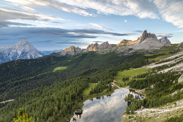Admiring the sunrise over Cortina d'Ampezzo, Val Boite, Belluno province, Veneto, Italy (MR)