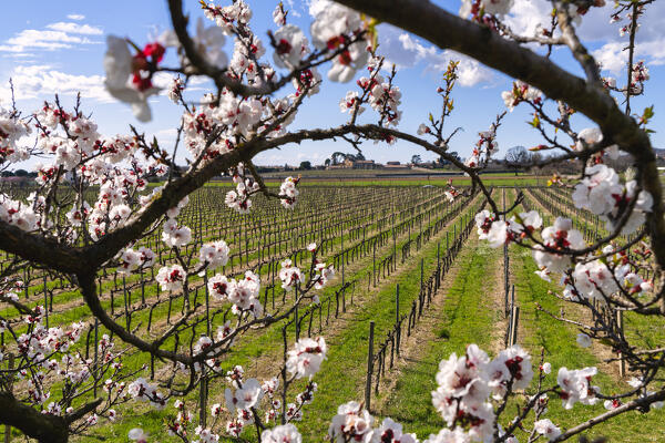 Tree at sunset in Franciacorta, Brescia province in Lombardy district, Italy.