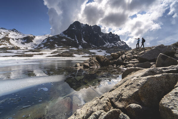 Sunset in Adamello park, Lago della vacca in Vallecamonica, Brescia province in Lombardy district, Italy.