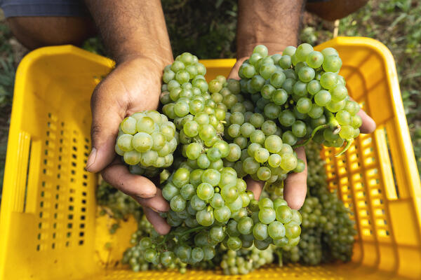 Harvest in Franciacorta in summer season, Brescia province in Lombardy district, Italy, Europe.