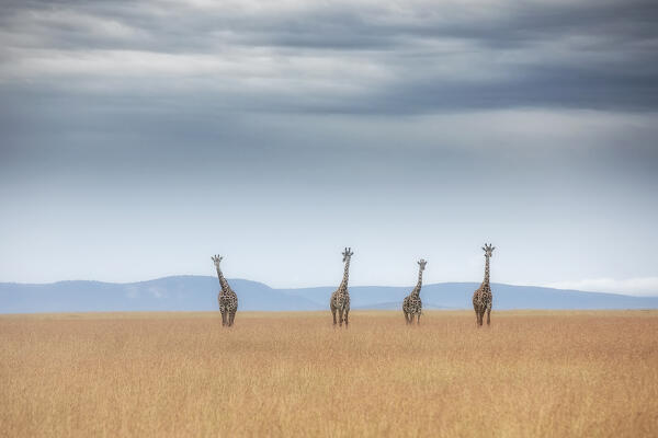 Masai giraffe (Giraffa camelopardalis tippelskirchi or Giraffa tippelskirchi) in the grassland of the Maasaimara, Kenya