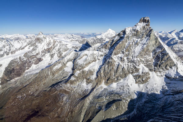 Aerial view of the italian side of Matterhorn Zermatt canton of Valais Switzerland Europe