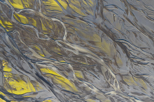 aerial abstract view, taken by drone, of icelandic coloured surface during an autumn day, Iceland, Europe