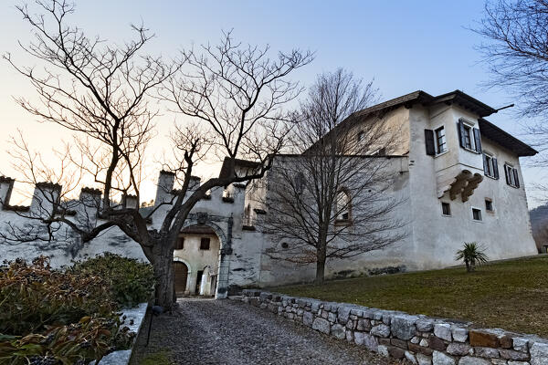 Dusk at the medieval castle of Castelfondo in the Non valley. Borgo d'Anaunia, Trentino, Italy, Europe.