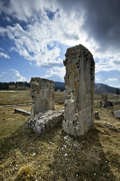 Vezzena Pass: ruins of the cableway station built by the Austro-Hungarian army during the Great War. Levico Terme, Trento province, Trentino Alto Adige, Italy.