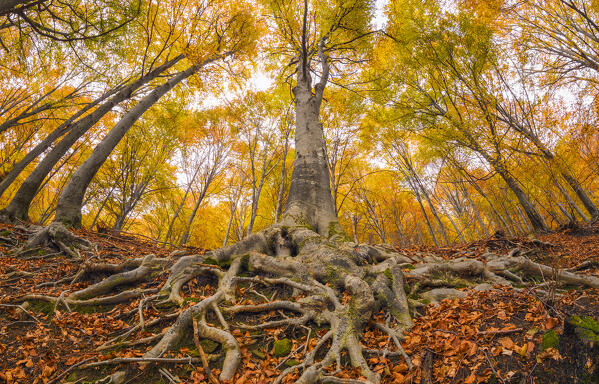 Autumnal trees in the forest. Ponna Superiore, Intelvi valley (val d'Intelvi), Como province, Lombardy, Italy, Europe