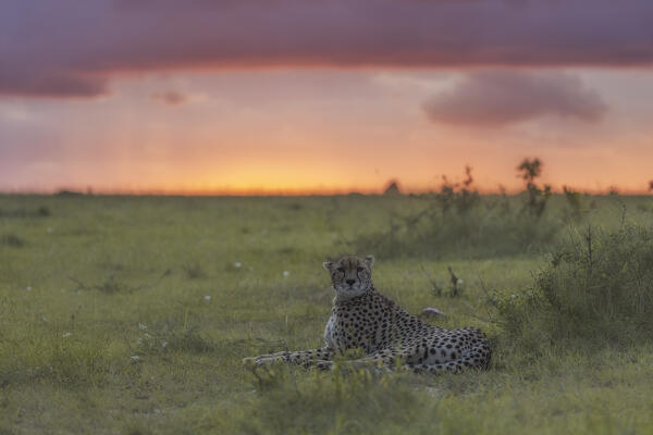 Cheetah (acinonyx jubatus) in the Maasaimara, at sunset