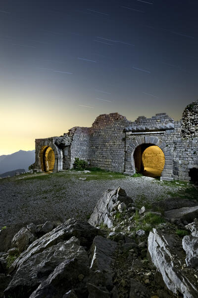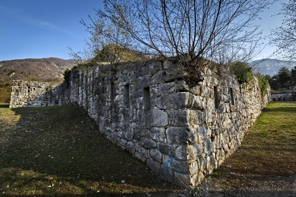 Fort Dosso delle Somme: corridors and internal floors of the Habsburg fortress of the Great War. Serrada, Folgaria, Alpe Cimbra, Trentino, Italy.
