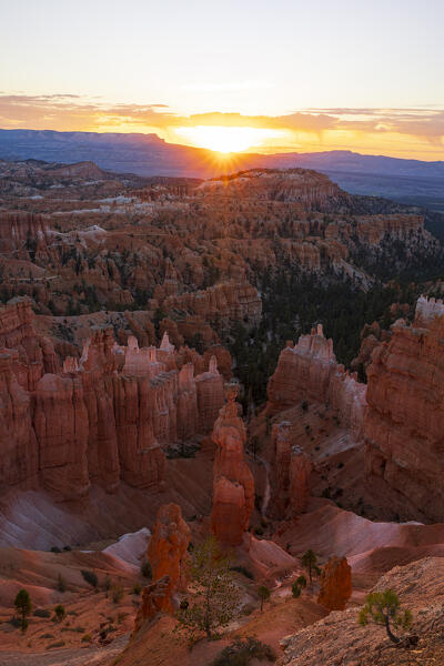 a warm light envelope the majestic rock formation in Bryce Canyon National Park during a summer day, Utah, United States of America