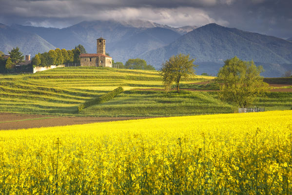 Flowering of Rapeseed fields (Brassica napus), Lurago Marinone, Como province, Lombardy, Italy, Europe